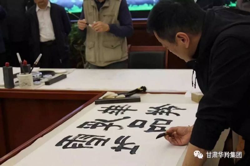 在華羚乳品公司四樓會(huì)議接待室,梅凱副院長(zhǎng),周明安委員,常銘主席等著名書畫家現(xiàn)場(chǎng)揮毫潑墨,場(chǎng)面熱鬧非凡,其樂融融。