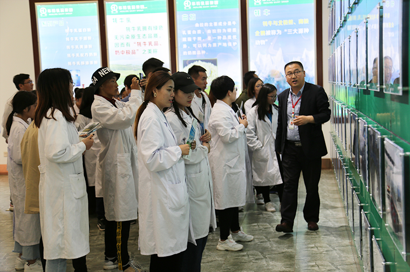 隨后師生們參觀了公司的透明生產車間、研發品控實驗室和甘南牦牛乳(曲拉)交易中心,人資行政部經理馬曉偉和各部門負責人向師生們介紹了公司各重點負責區域的發展動態,同學們一個個認真聆聽,對牦牛乳研發生產產生了濃厚的興趣,并提出了各式各樣的問題,現場部門負責人一一進行了細心解答。