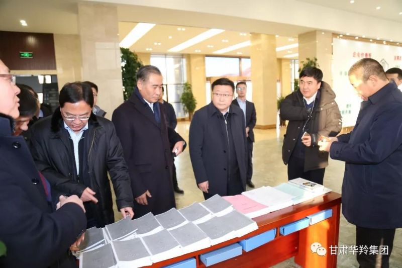 ▲調(diào)研組一行查閱華羚乳品集團(tuán)扶貧材料