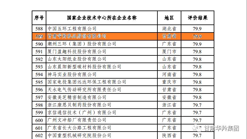 甘肅華羚乳品股份有限公司以79.9分被評為良好,是此次評選入圍的僅有5家乳制品生產制造企業其中之一,這充分體現了華羚公司在乳制品行業中技術創新發展水平。