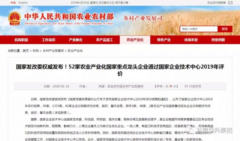 日前,國家發展和改革委員會辦公廳和農業農村部相繼發布了《國家發展改革委辦公廳關于發布國家企業技術中心2019年評價結果的通知》、《國家發改委權威發布!52家農業產業化國家重點龍頭企業通過國家企業中心2019年評價名單》,在涉及到的52家農業產業化國家重點龍頭企業中,2家、48家、2家企業分別被評為優秀、良好、基本合格。
