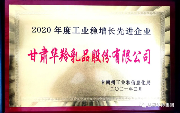 近日,為激勵表彰甘肅華羚乳品股份有限公司在2020年度全州促生產、保增長,工業經濟健康平穩可持續發展做出的貢獻,甘南州工業和信息化局授予甘肅華羚乳品股份有限公司“2020年度工業穩增長先進企業”榮譽稱號!